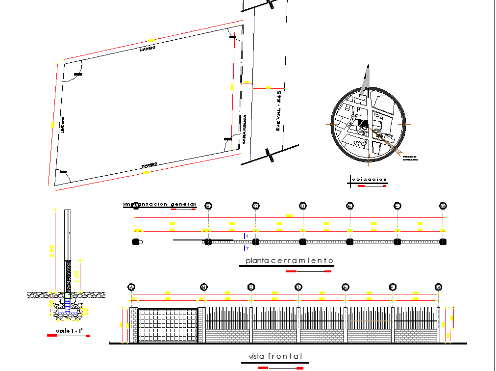 Boundary line wall plan and elevation view detail dwg file