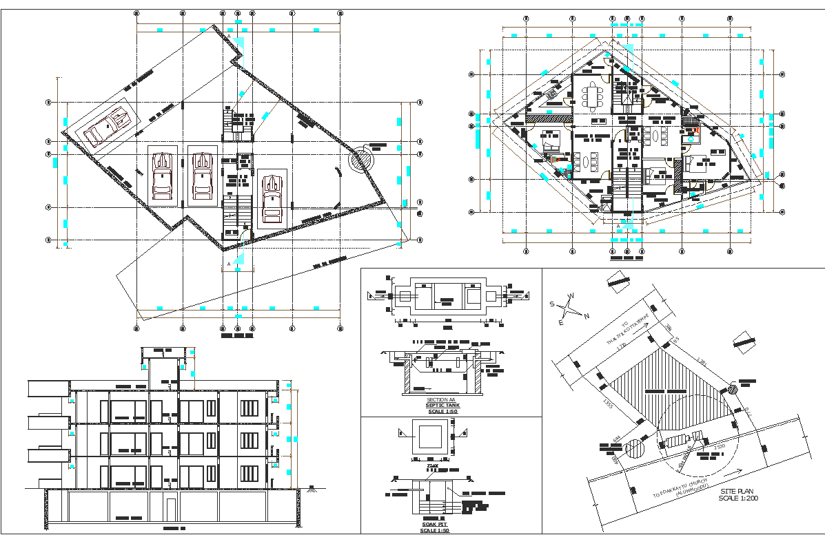 Beam and column detail, Working commercial plan detail dwg file, working commercial plan detail with furniture plan detail with chair and table, car parking detail, stair detail, table, toilet detail, etc.