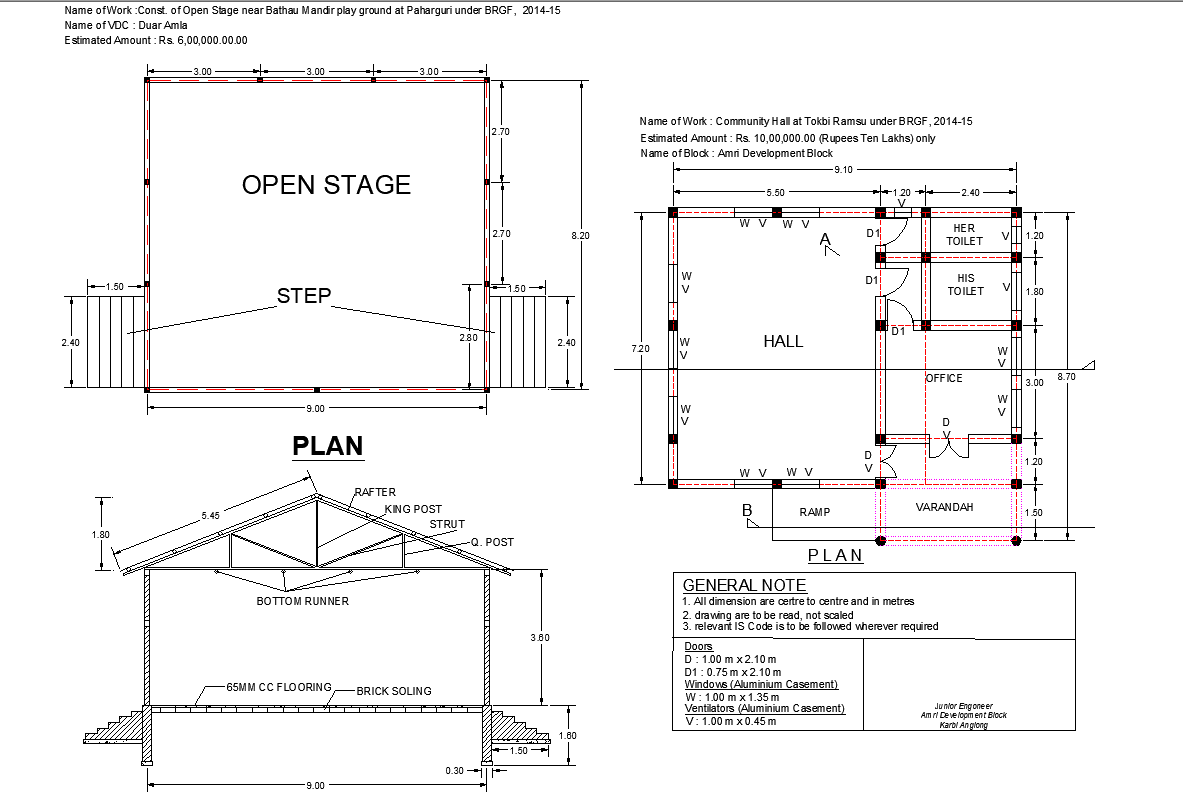 Office plan and elevation detail dwg file, Working plan and elevation detail with dimension detail, naming detail, center line plan detail with numbering detail, roof elevation detail, stair detail with numbering detail, etc.