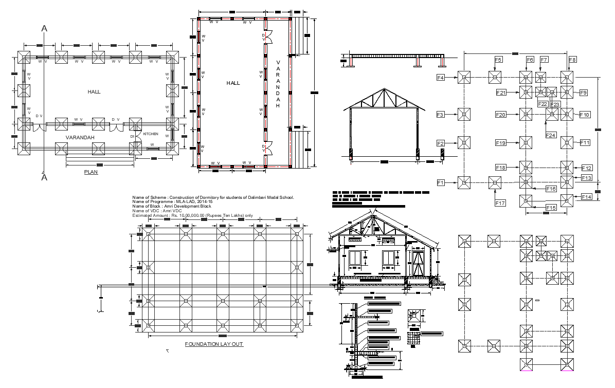 Construction plan detail dwg file, Construction plan detail with Foundation plan detail with dimension detail, naming detail, steel structure detail, roof elevation detail, reinforcement detail, etc.