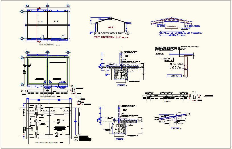 Foundation plan with construction detail of school classroom dwg file