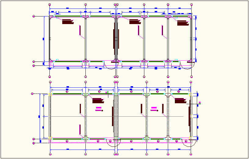 of column view with column motioning position and wall and classroom view with necessary dimension.