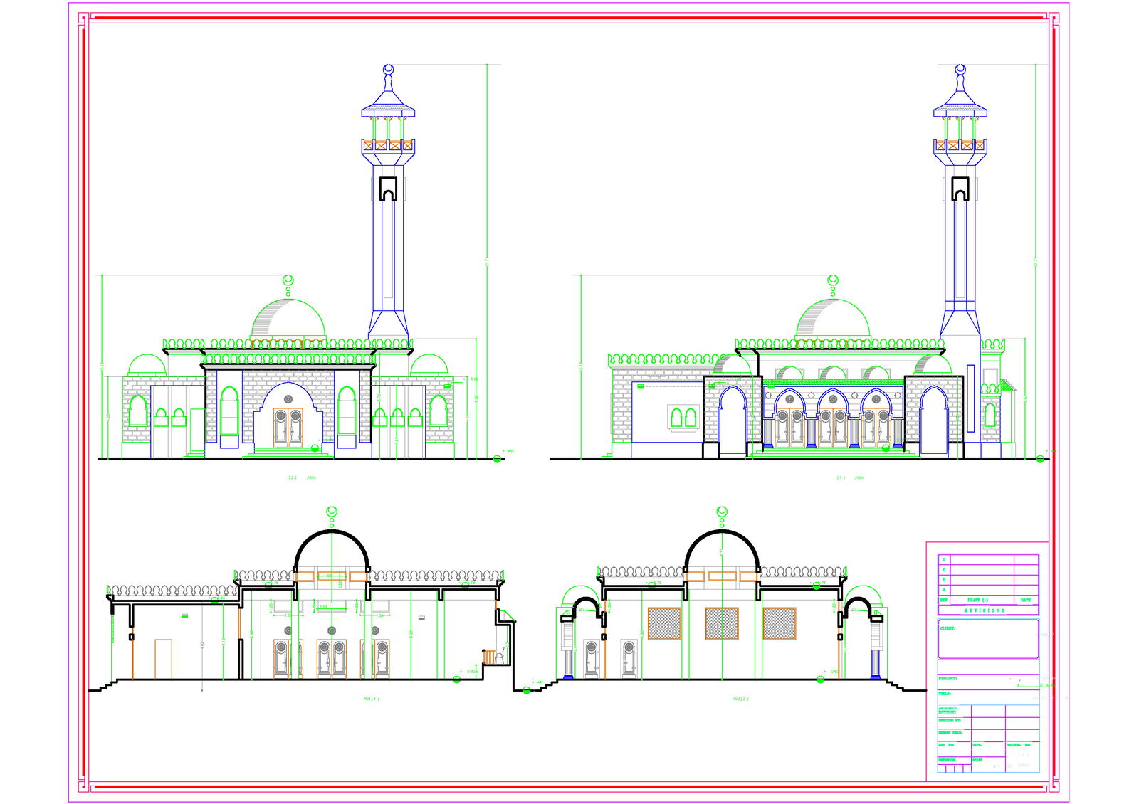 Mosque Outer Elevations + Sectional Elevation with Details & Measurements of Doors & Windows & Other Scheduling..Best References