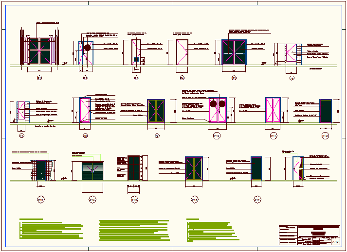 elevation view with door view,door frame view,different pattern view of door and door lock view