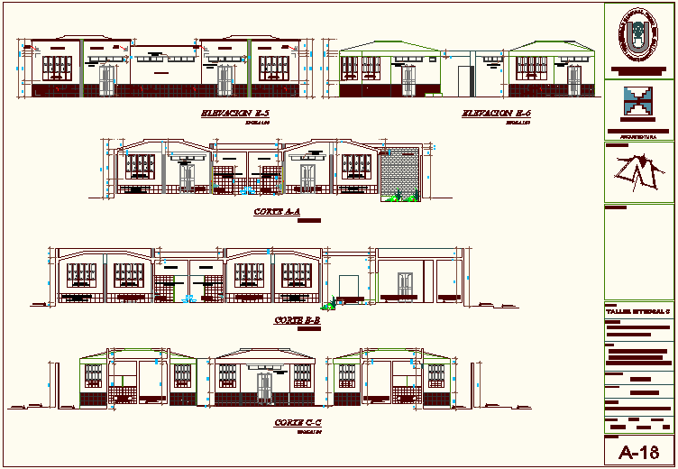 Section view with different axis and elevation of education building dwg file in section view with with floor and floor level view and view of door and window view with necessary dimension and other axis section view.