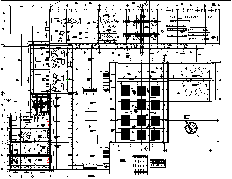 Working plan detail dwg file, Working plan detail with dimension detail, naming detail, tree and plant detail, furniture detail with chair and table detail, section line detail, etc.