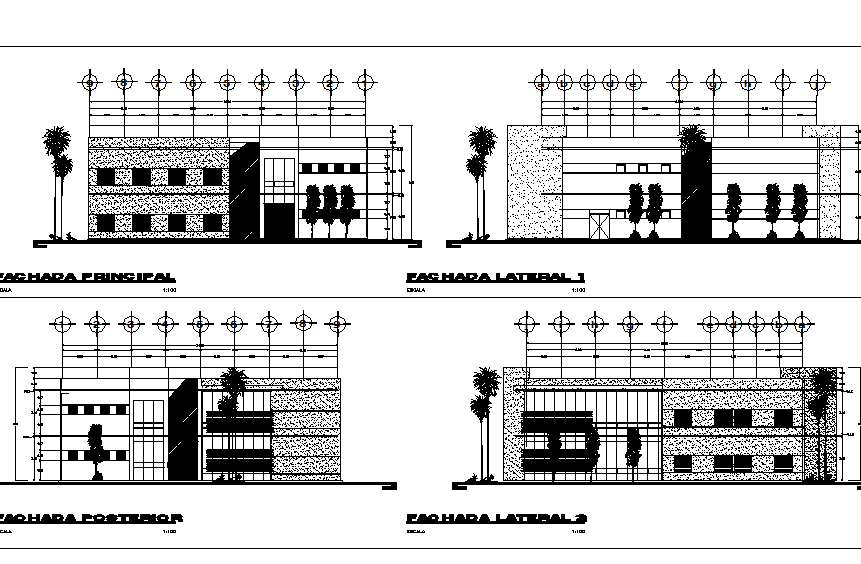Elevation working plan detail dwg file, Elevation working plan detail with naming detail, dimension detail, both side tree detail, etc.