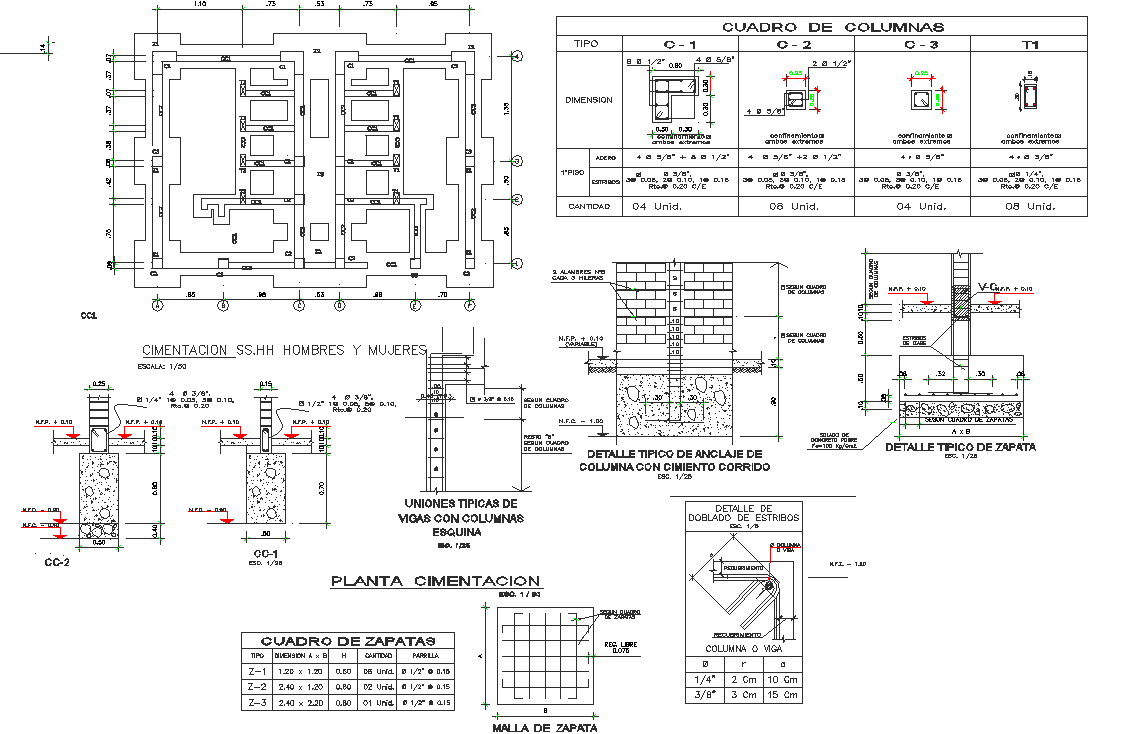 Construction detail dwg file, center line plan, foundation plan detail In naming detail and dimension detail, roof plan detail in naming an dimension detail , beam detail in reinforcement detail in dimension detail and naming detail, reinforcement table detail, etc.