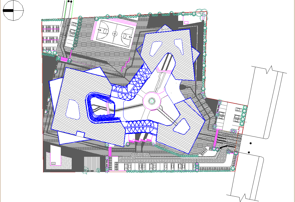 Hatching plan detail dwg file, Hatching plan detail with north direction detail, naming detail, car parking detail, badminton detail, etc.
