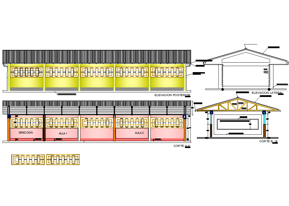 Roof elevation and section detail dwg file