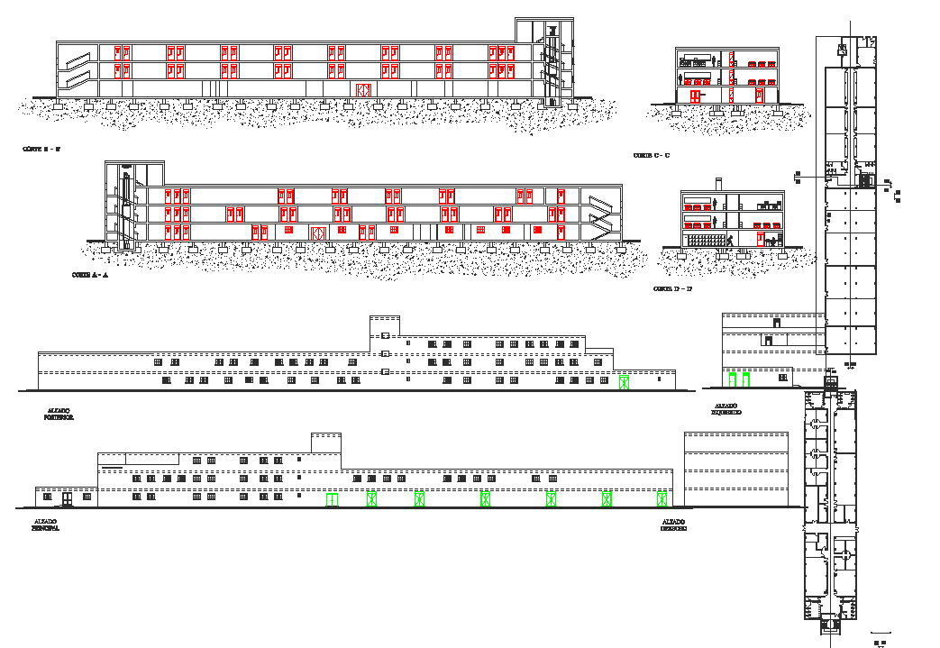 Elevation and section detail dwg file, Elevation and section detail with dimension detail, naming detail, stair cutting detail, reeling detail, etc.