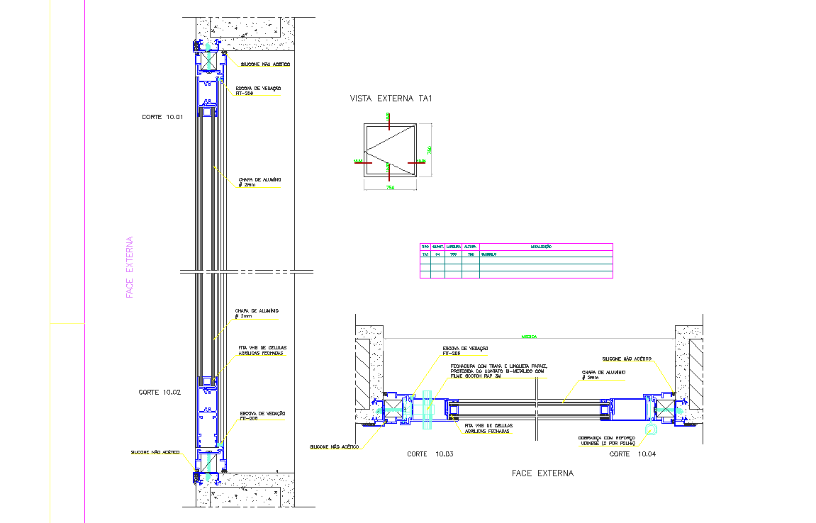 window and door section and section plan view detail dwg file