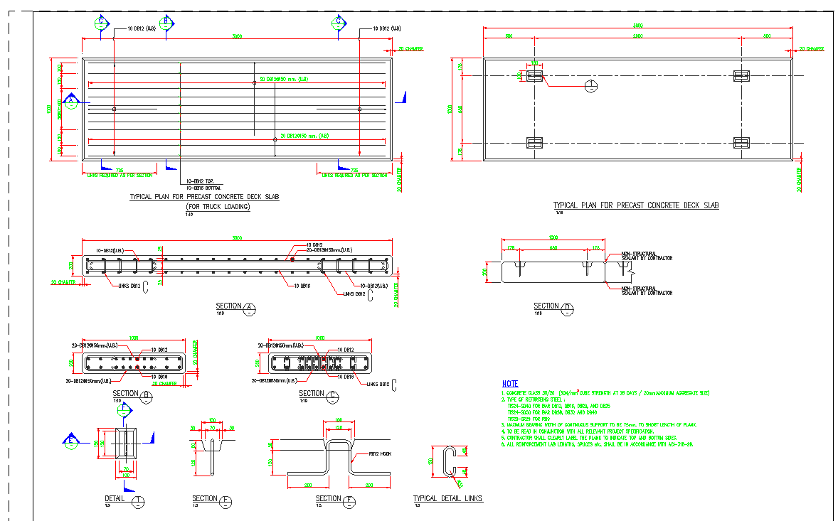 Structure detail view dwg file, Structure detail view with dimensions detail, specification detail, reinforcement detail, steel bars detail view, section view detail, link Detail etc