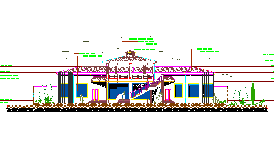Bungalow elevation view detail dwg file