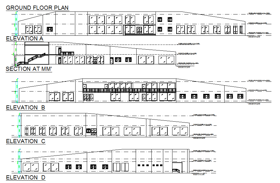 Elevation detail dwg file, Elevation detail with dimension detail, naming detail, front elevation detail, right elevation detail, left elevation, back elevation, etc.