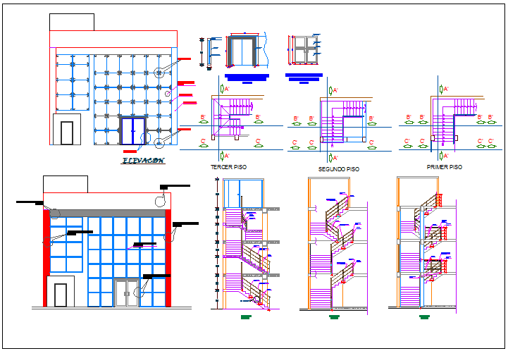 Residential building elevation and section view detail dwg file, Residential building elevation and section view detail with specification detail, dimensions detail etc