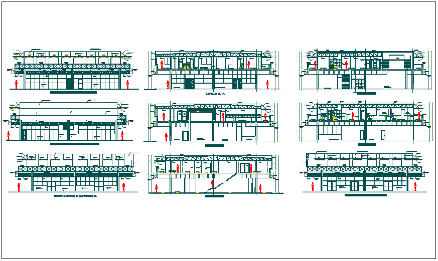 Commercial building plan detail view dwg file, Commercial building plan detail view with specification detail, dimensions detail, elevation and section view detail etc