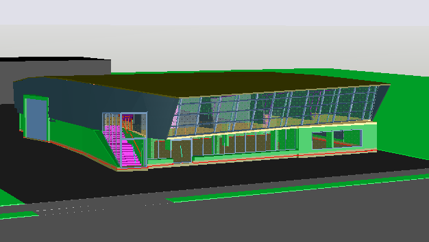 Detailed 3D Model View of Commercial Building Design in DWG File