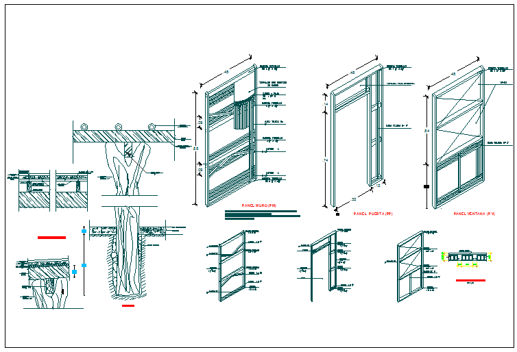 Door window panel detail view dwg file