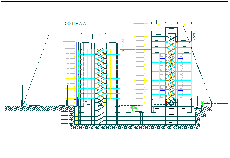 High rise building elevation section view detail dwg file