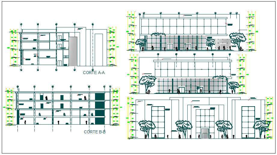 Office building plan detail view dwg file, Office building plan detail view with specification detail, dimensions detail, elevation and section view detail etc