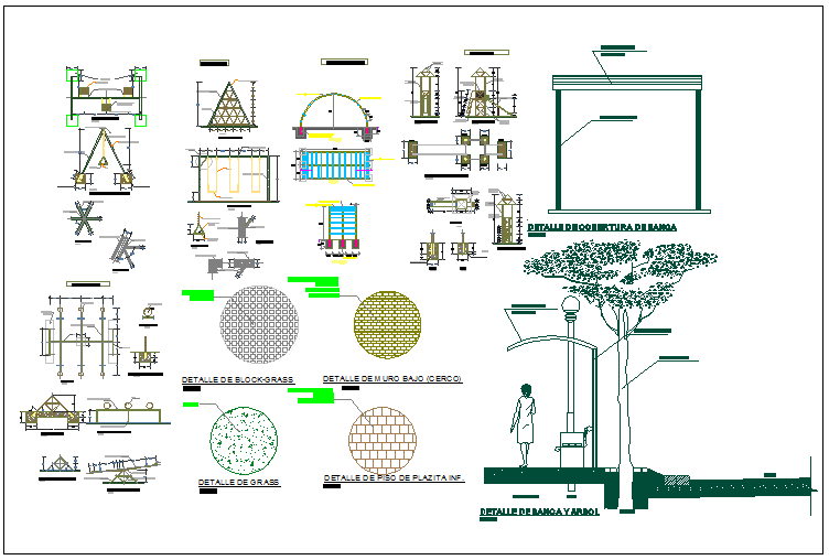 Park garden equipment detail view dwg file