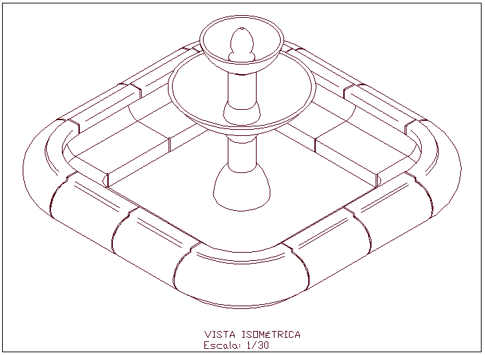 3d view of decorative show fountain detail view dwg file