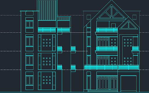 The file also includes a full building front elevation showing balcony forms, façade treatments, window alignment, parapet levels, and roof geometry. The section plan highlights slab heights, floor levels, stair connections, and vertical circulation, helping users understand the internal structure of the apartment. This detailed AutoCAD DWG resource is ideal for architects, interior designers, civil engineers, and builders who require an editable apartment design with accurate measurements. Its clear drafting style, annotation quality, and multi-sheet presentation make it suitable for construction planning, working drawings, and client presentation work for modern apartment projects.