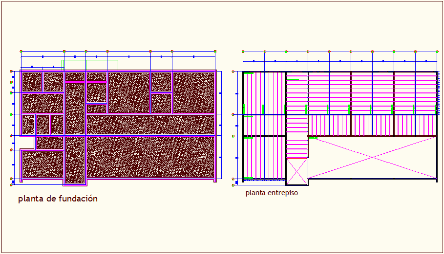 Foundation structure cover construction view dwg file in plan with view of foundation view of cover with concrete and wall and support view and mezzanine floor view with area distribution and wall view with necessary dimension.