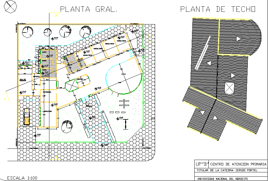 Ground floor and roof plan detail dwg file, Ground floor and roof plan detail with dimension detail, naming detail, section line detail, car parking detail, office plan detail, etc.