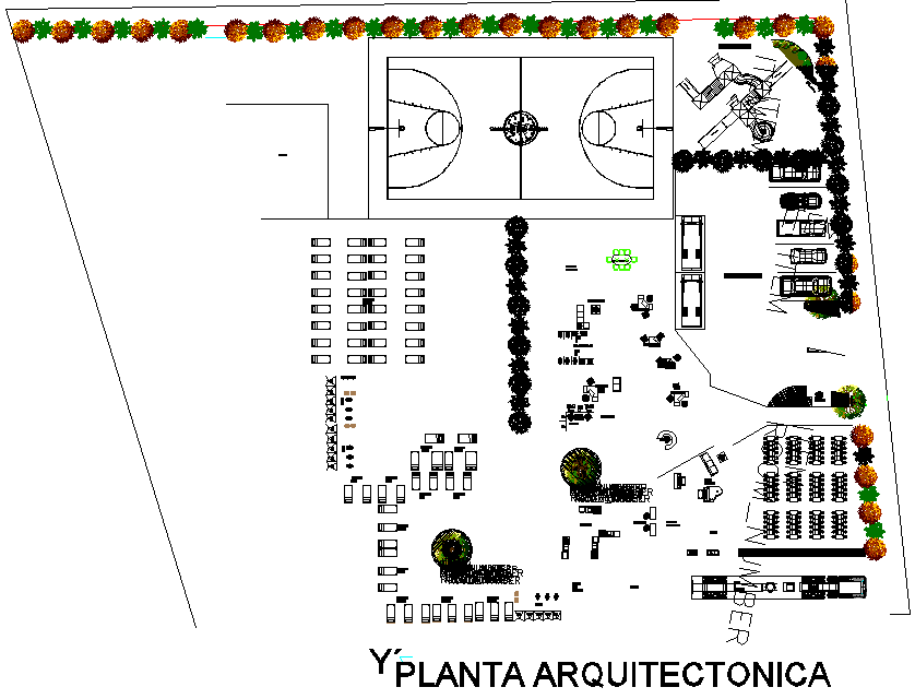 Commercial building plan detail dwg file, Commercial building plan detail with landscaping detail, tree and plant, car parking detail, etc.