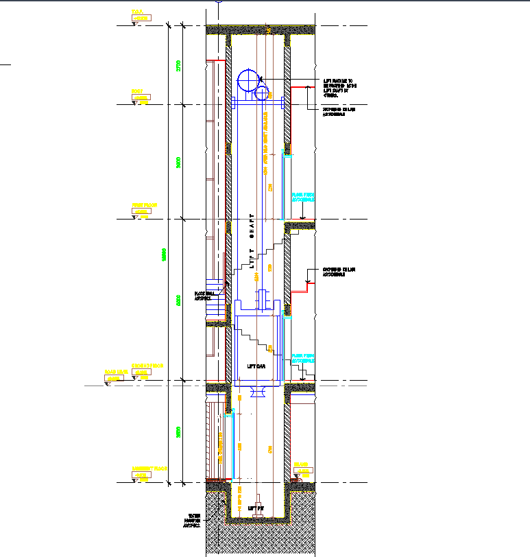Complete lift design with detailed layout section and installation DWG