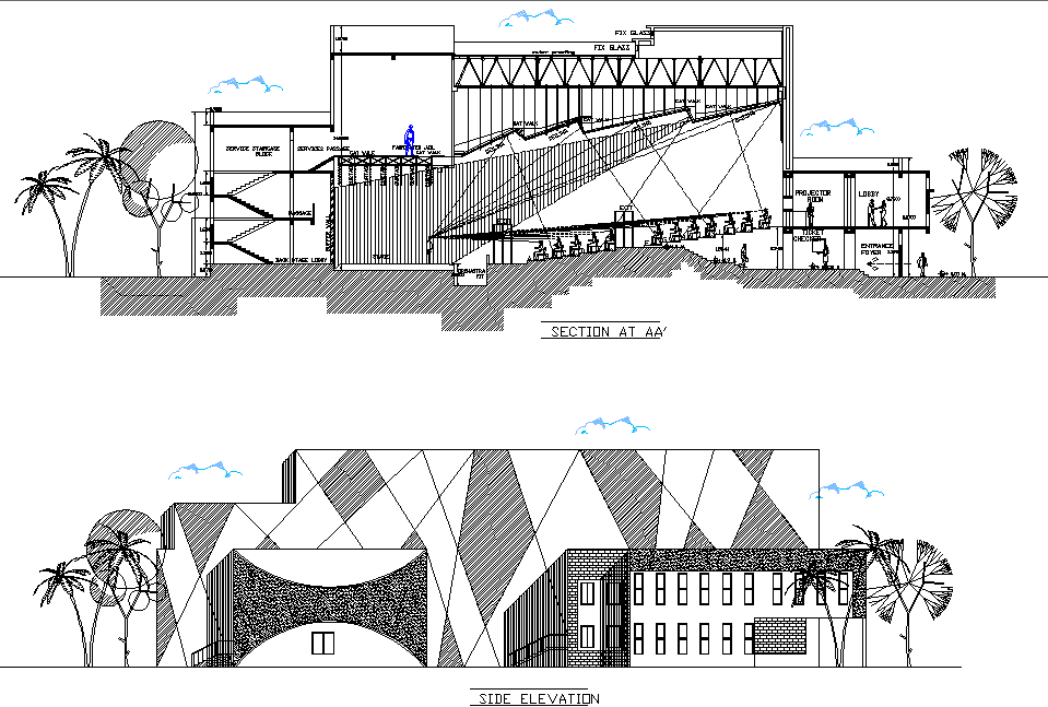 Section detail dwg file, Section detail with dimension detail, naming detail, section A-A’ room cutting detail, section B-B’ door and window cutting, etc.