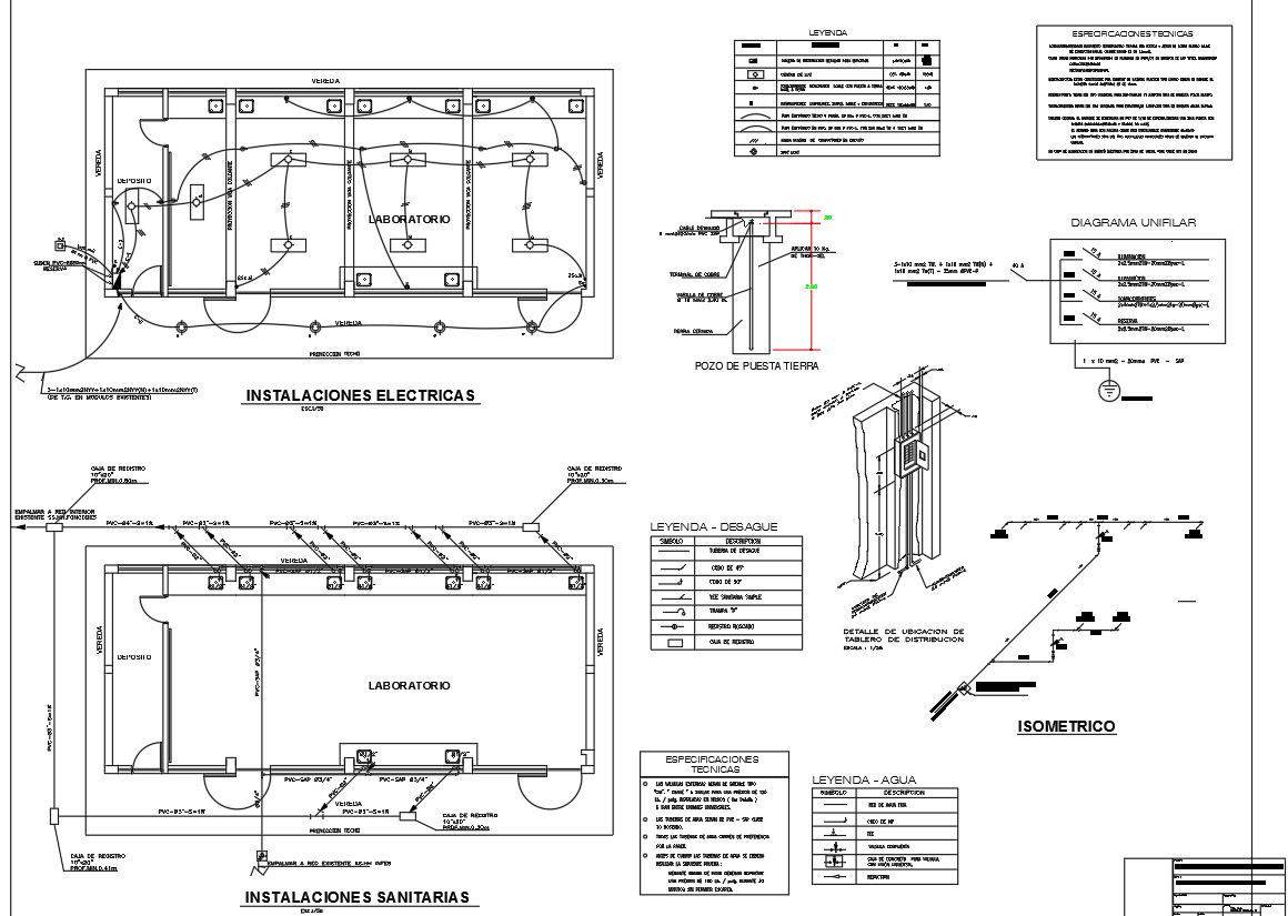 College laboratory architecture project that includes a detailed view of foundation plan details, laboratory structure details, electric installation details, cable details, column construction details, measures, cable panel and much more of college laboratory details.
