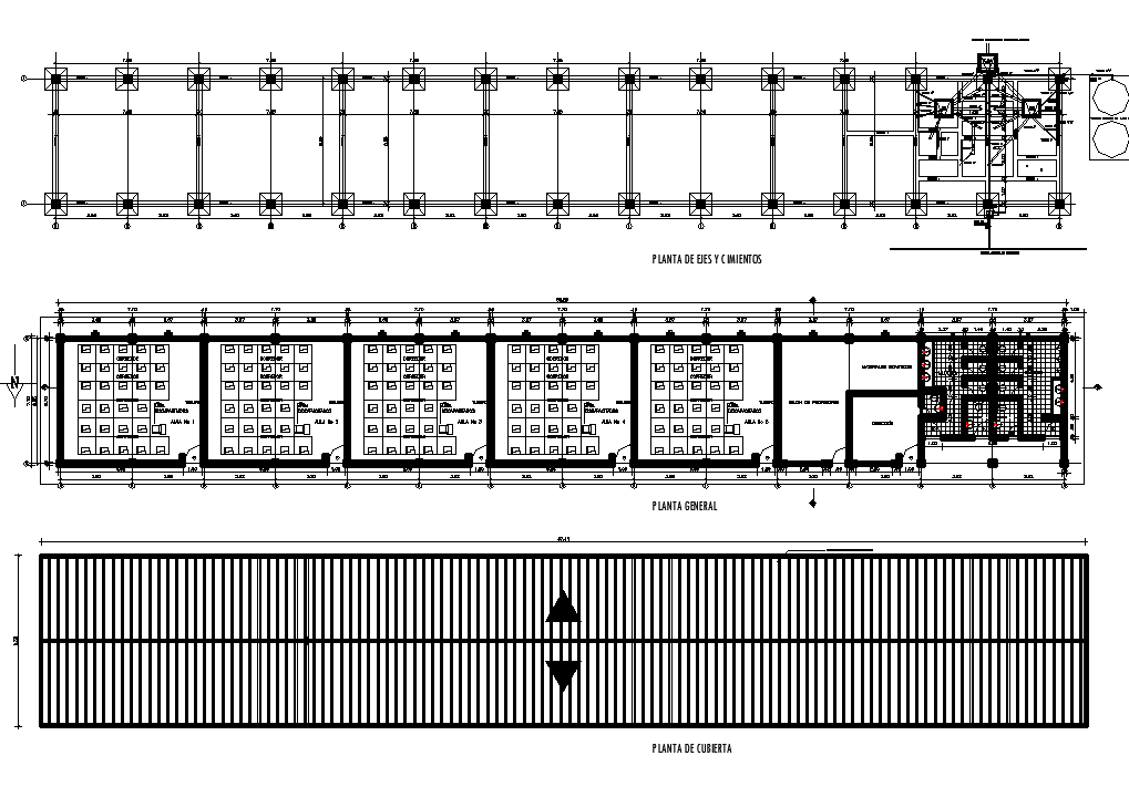 Foundation plan and roof plan detail dwg file, Foundation plan and roof plan detail with dimension detail, naming detail, entree and exit arrow detail, center line detail with numbering detail, furniture detail with table and chair, etc.