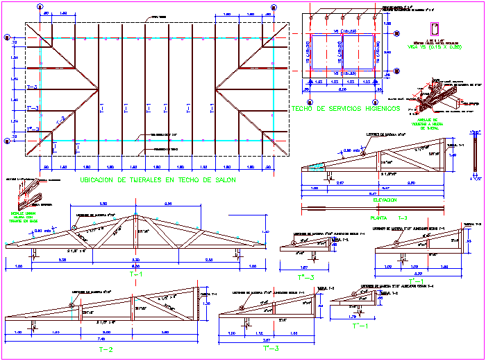 Structural view with roof plan with detail for multiple use hall dwg file