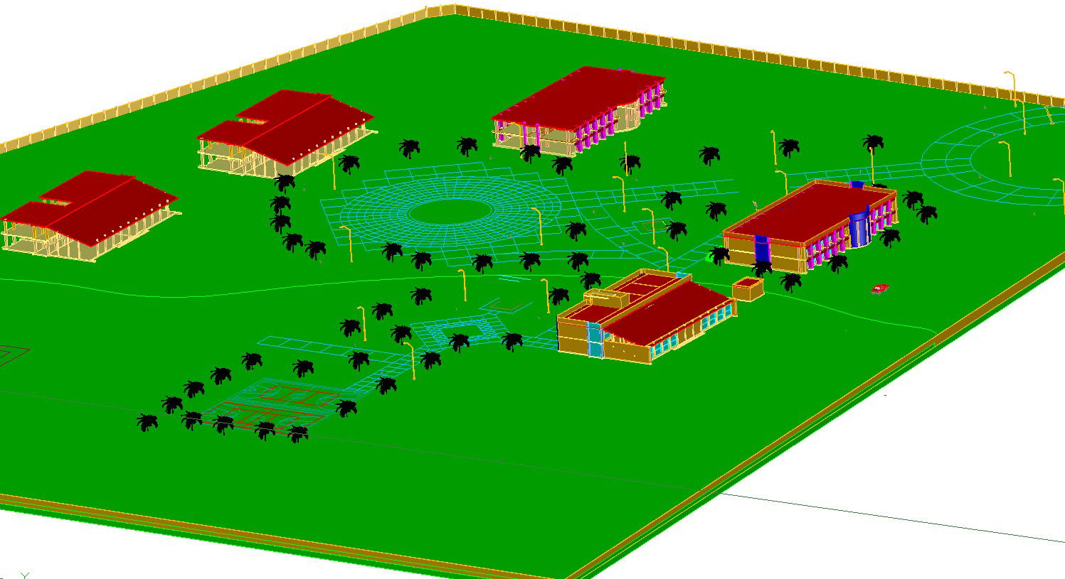 3 D elevation plan view detail dwg file, 3 D elevation plan view detail with street light detail, tree and plant detail, etc.