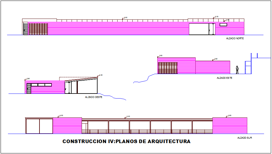 Elevation with different axis of government building dwg file in elevation with floor,wall,door, window view with floor level.