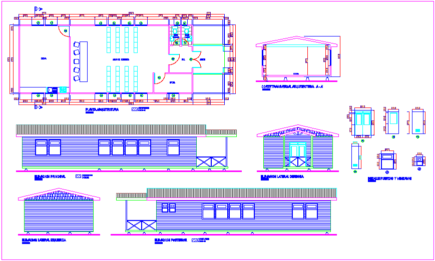 Government rehabilitation alcoholic building plan,elevation and section view with door and window detail dwg file in architectural plan with office,meting room,hall,washing area,door and window detail with elevation and section view with necessary dimension.