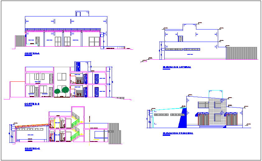 floor and wall view in section view with floor level,entry way,stair,door,window,balcony,wall support with necessary dimension.