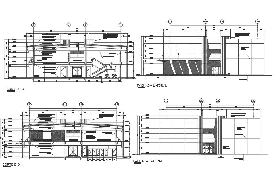 Elevation and section detail dwg file, Elevation and section detail with naming detail, both side tree detail, reeling detail, door and window detail, stair detail, etc.