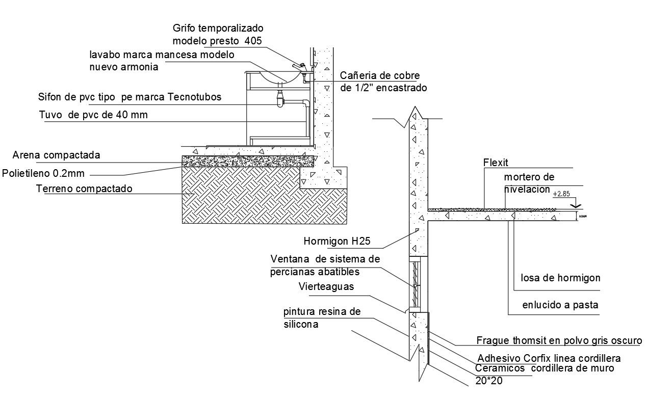 Wall section and sink elevation detail dwg file, Wall section and sink elevation detail with leveling detail, naming detail, concert mortar detail, window detail, etc.