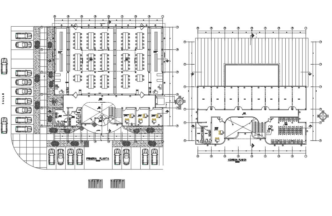 Office plan detail dwg file, Office plan detail with naming detail, dimension detail, furniture detail with door and window detail, car parking detail, etc.