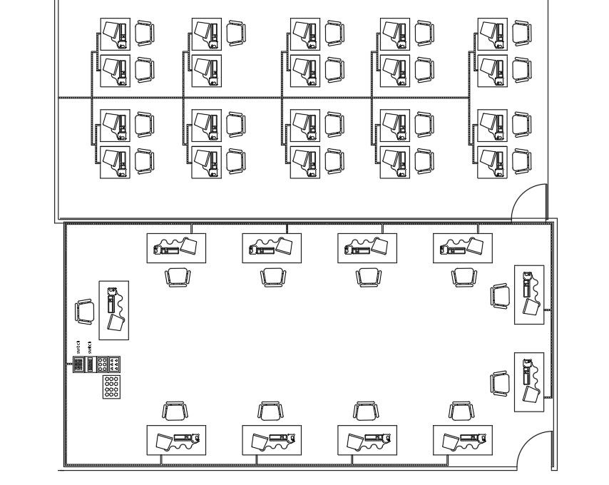 Commercial plan detail dwg file, Commercial plan detail with furniture detail with chair, table, door and window detail, computer detail, etc.