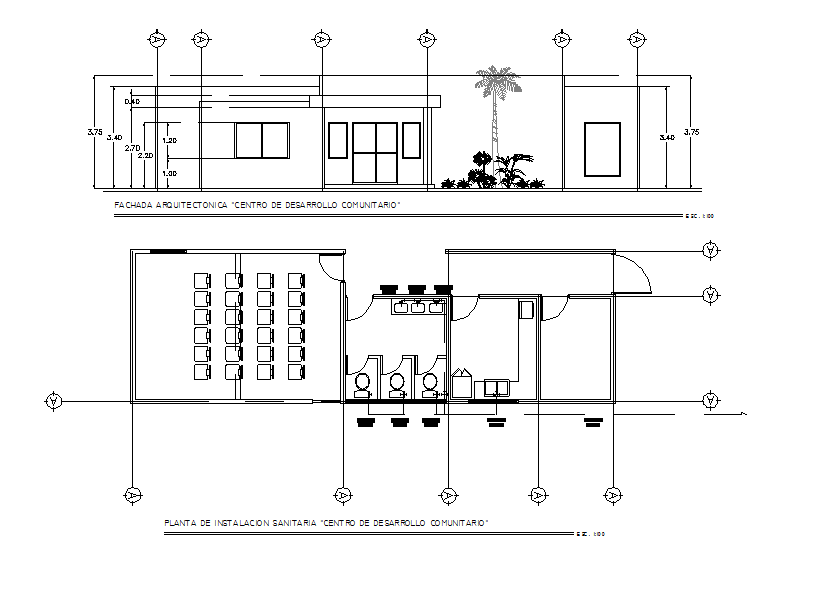 Office plan and elevation working plan detail dwg file, Office plan and elevation working plan detail with dimension detail, naming detail, landscaping detail with plant and tree detail, toilet detail, etc.