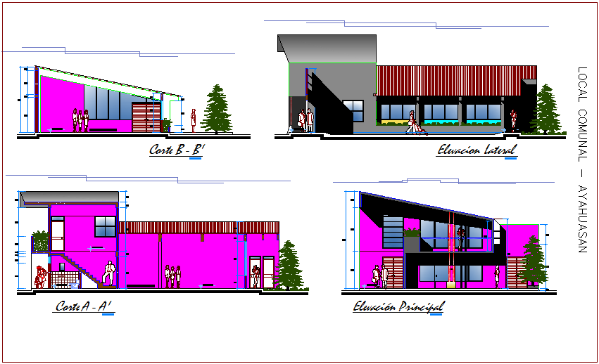 Elevation and section view of office dwg file