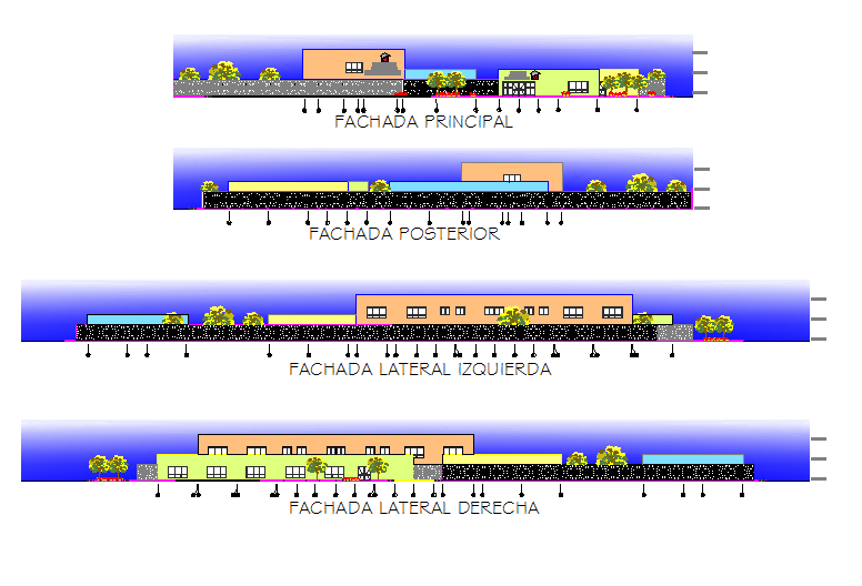 Elevation working detail dwg file, Elevation working detail with dimension detail, naming detail, front elevation detail, back elevation, landscaping detail with plant and tree detail, furniture detail with door and window detail, etc.