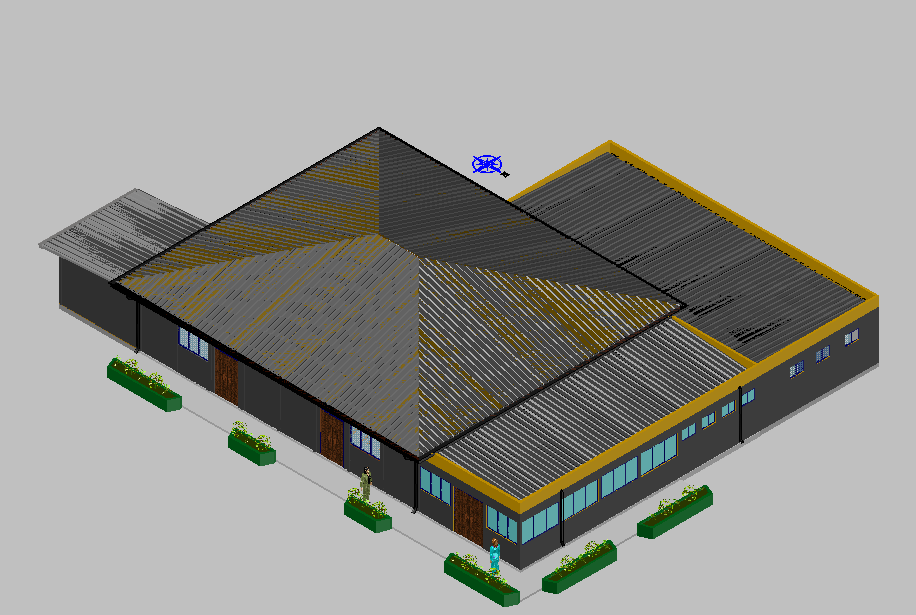 3 D elevation detail dwg file, 3 D elevation detail with north direction detail, furniture detail with door and window detail, roof elevation detail, etc.