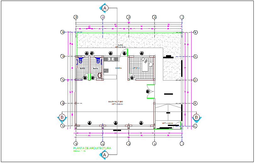 Social head office architectural plan dwg file