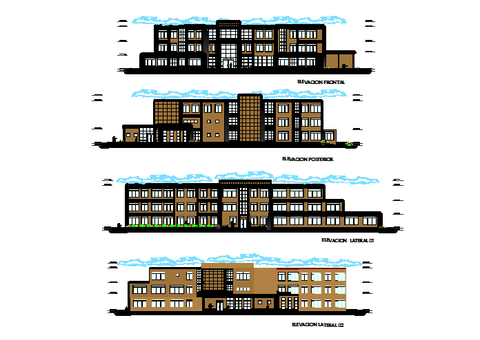 Elevation detail dwg file, Elevation detail with dimension detail, naming detail, front elevation detail, left elevation, back elevation, etc.